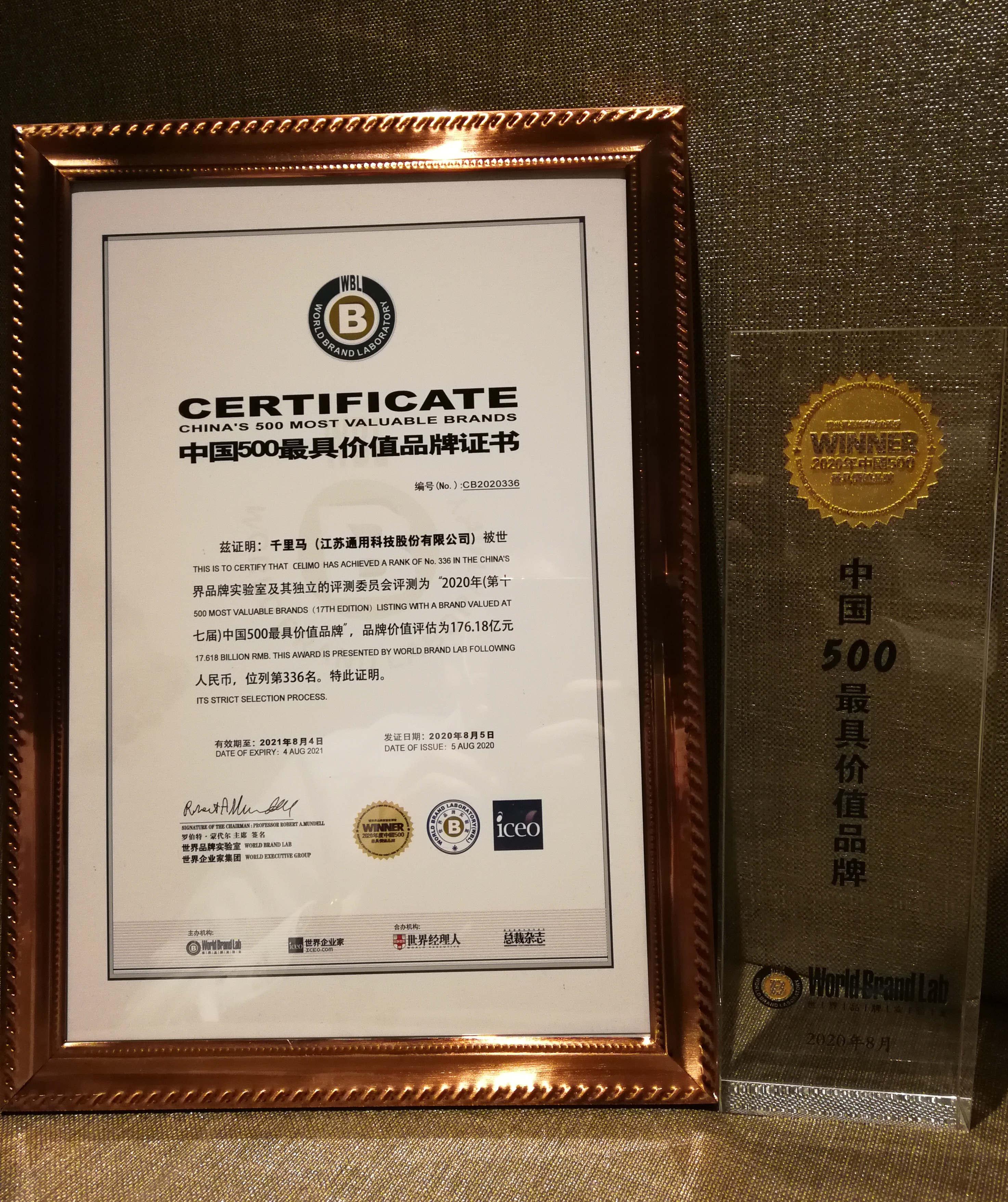8月5日下午,在世界品牌實驗室(World Brand Lab)主辦的第十七屆世界品牌大會暨2020年中國500最具價值品牌發布會上,通用股份旗