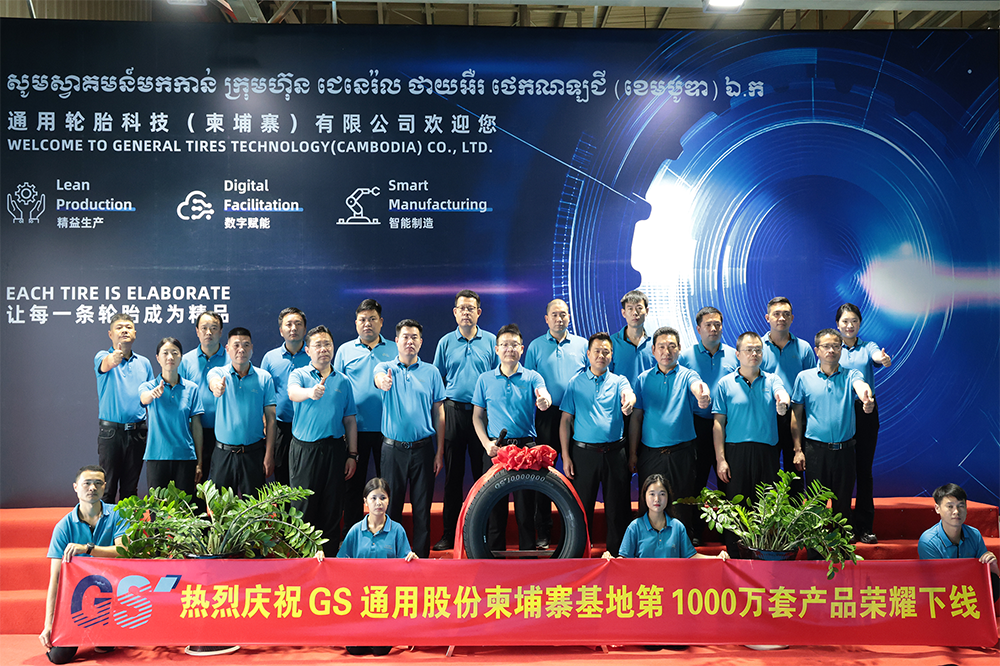 5月6日,通用股份柬埔寨基地迎來(lái)歷史性時(shí)刻。在半鋼硫化車間內(nèi),千里馬品牌275 55R20 PREVAIL H T輪胎緩緩誕生,標(biāo)志著基地第1000萬(wàn)條輪