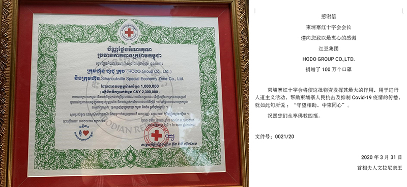 柬紅會舉行紅豆集團(tuán)捐贈100萬口罩接收儀式 我謹(jǐn)向您(周海江)致以最衷心的感謝……就如此句所說:‘守望相助,中柬同心’