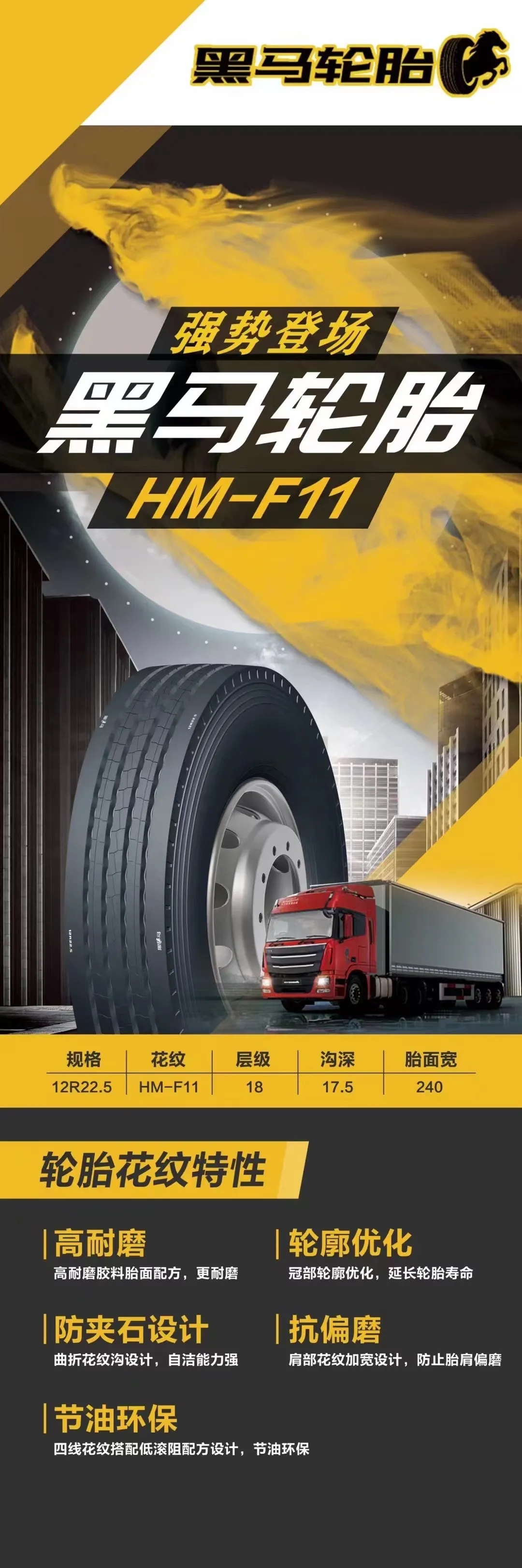 今年推出的黑馬輪胎HM-A33以其高顏值、高耐磨性、節(jié)油環(huán)保等特點獲得了市場一致好評。