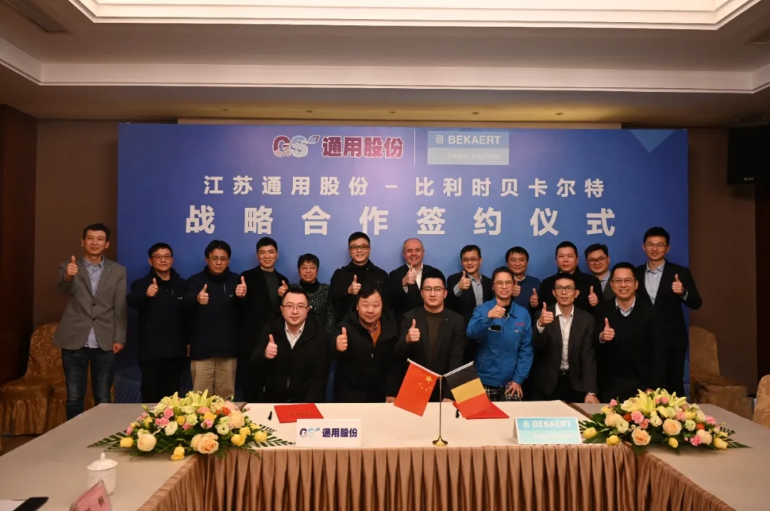 會上,通用股份與貝卡爾特續簽《戰略合作協議》,雙方將在已有良好合作的基礎上,充分發揮各方優勢,實現全價值鏈的戰略合作,推進精益管理,共同參與新品研發,推動新材料和新技術的應用與發展,為行業共性關鍵技術的突破打下堅實的基礎,助力中國輪胎市場快速發展。